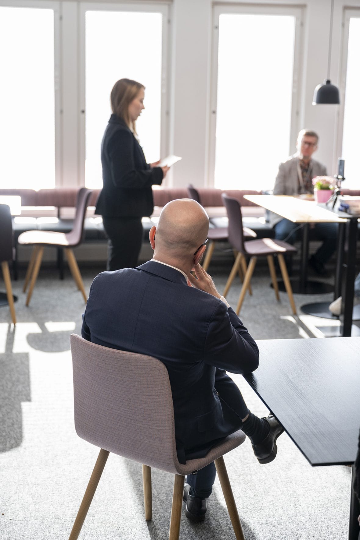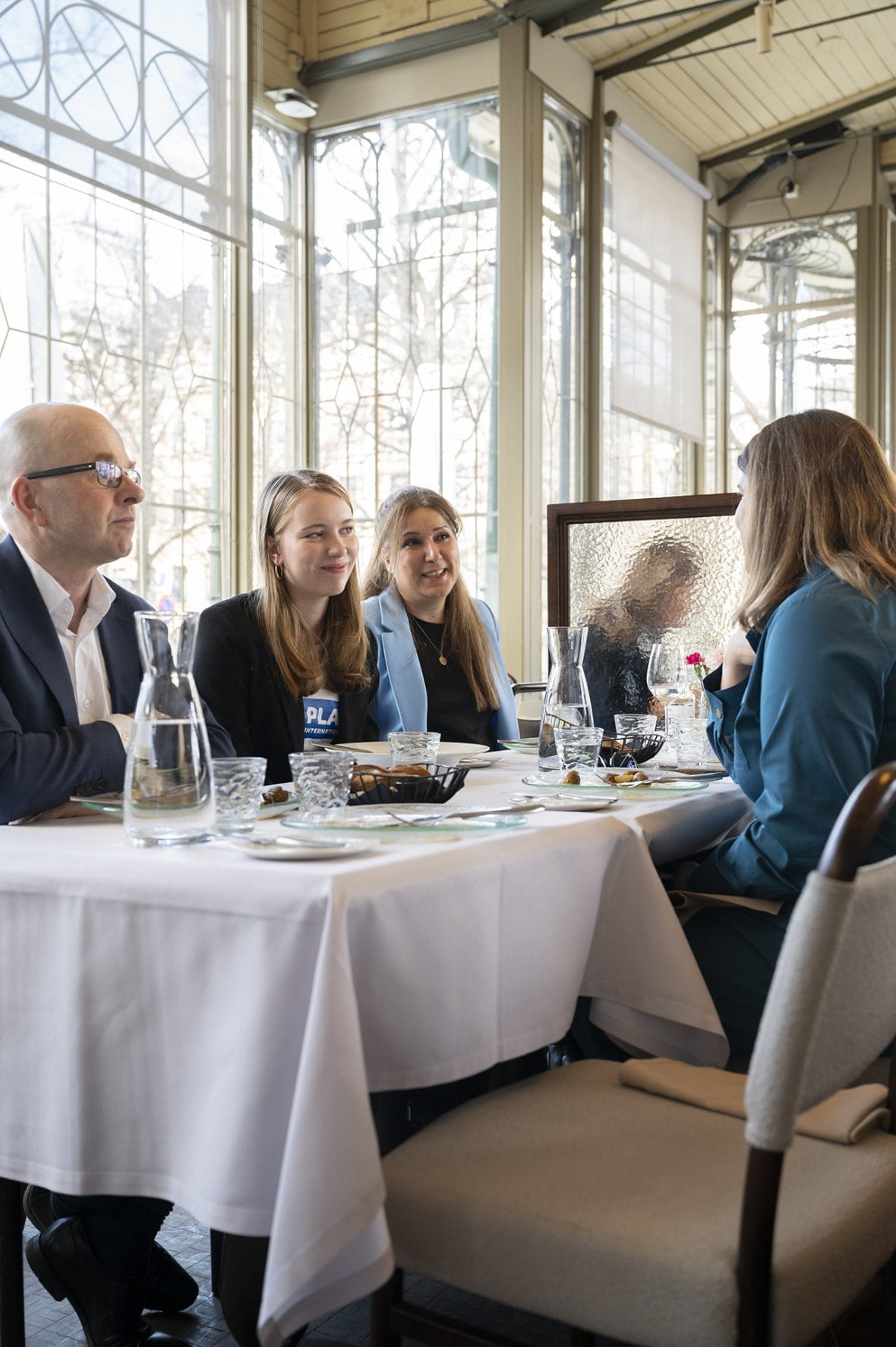 Päätoimittaja Salla Penttinen lounasti Tampereen pormestarin Ilmari Nurmisen kanssa. Lounaan äärellä aiheina olivat naisten asema kuntien päätöksenteossa ja Tampereen tasa-arvotyö. Kuva: Inka Kovanen / Plan International Suomi