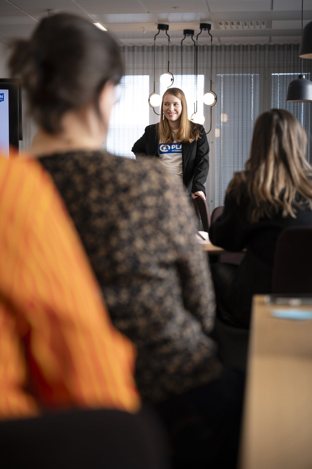 Penttinen osallistui pääkirjoituspalaveriin, jossa hän ehdotti tyttöjen asemaa kriiseissä käsittelevää pääkirjoitusta. Kuva: Inka Kovanen / Plan International Suomi