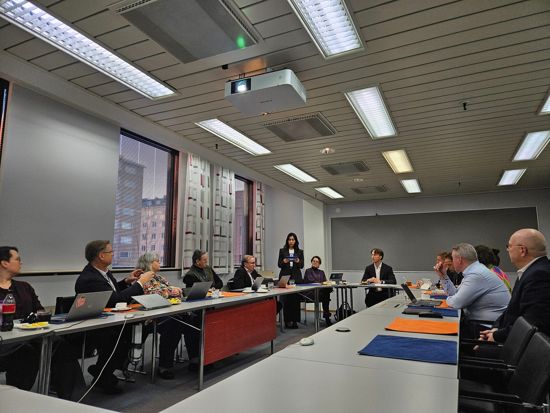 Kimya Fayaz tapasi päivän aikana Kuntaliiton hallituksen työvaliokunnan. Pitämässään puheenvuorossa hän herätti keskustelua, miten kunnat voivat vahvistaa maahan muuttaneiden tyttöjen ja nuorten naisten osallisuutta. Kuva: Sofia Bernoulli / Plan International Suomi